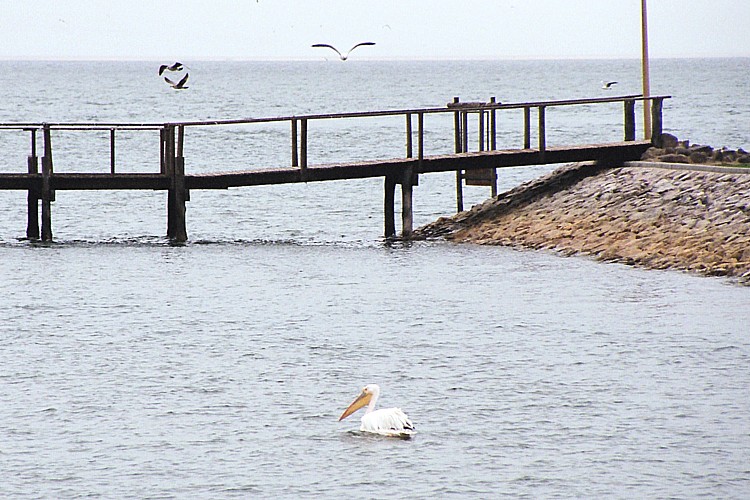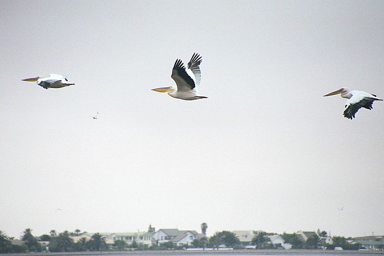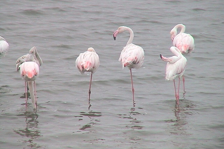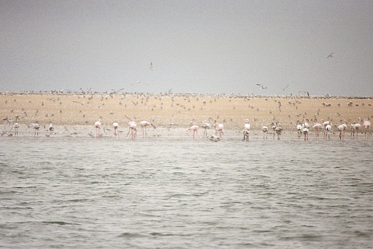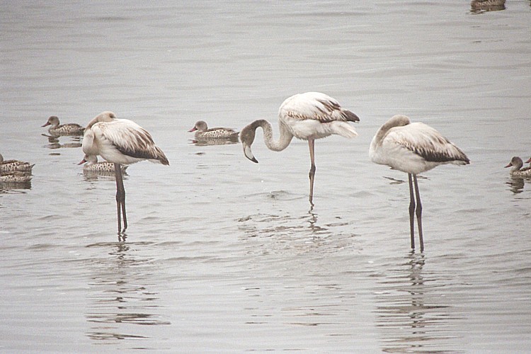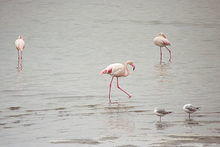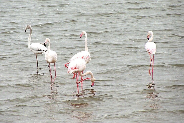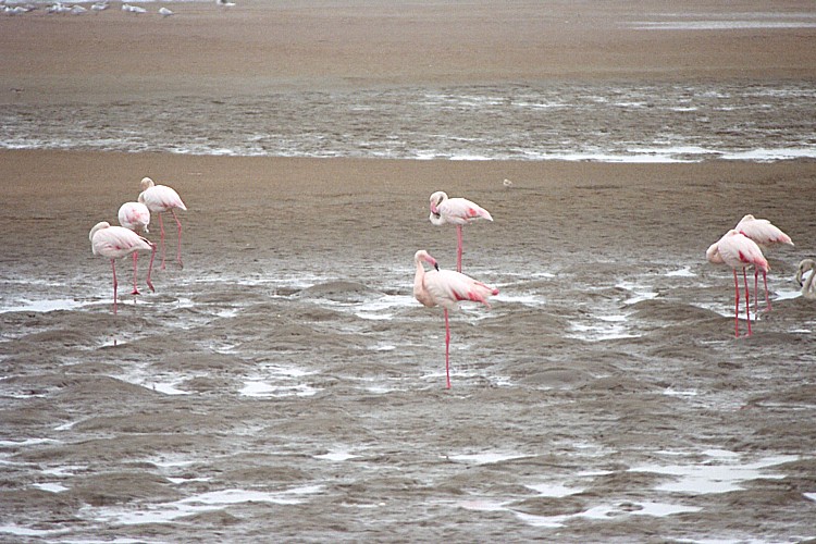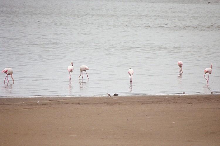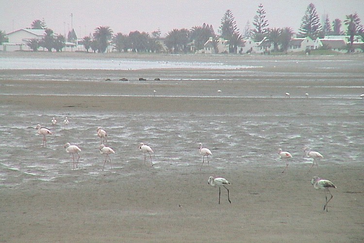 ペリカンポイントに集まる海鳥の中には、薄いピンクのフラミンゴもいた。
