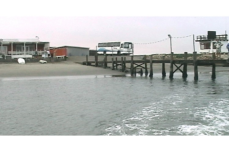 ペリカンポイントの砂洲にある、灯台と管理センター。 |