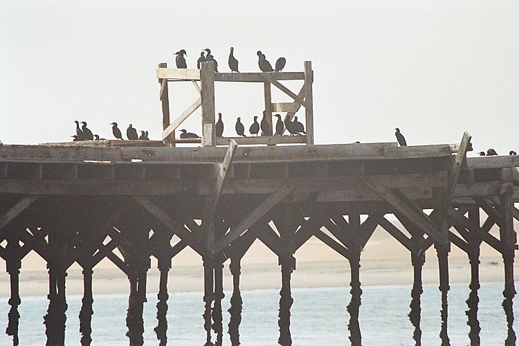 桟橋では、沢山のウミウが羽を休めていた。 |