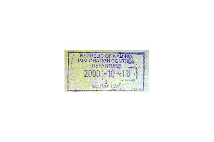 ウォルビスベイ空港でのナミビアの出国スタンプ。 |