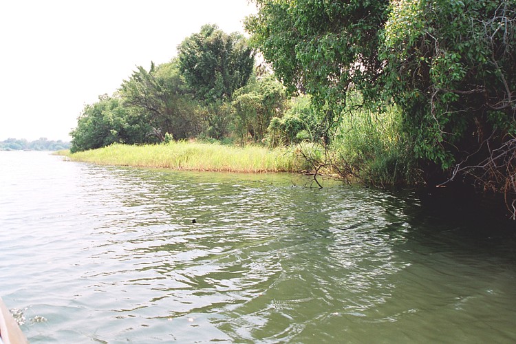 インパリラはナミビアの領土だが、ナミビア国内から訪れる事は難しく、チョベ国立公園があるボツワナのカサネから舟で渡る。 |