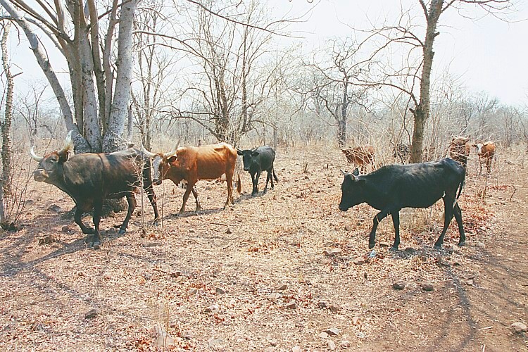 入国管理局から奥へと向かう道で、牛が行進していた。 |