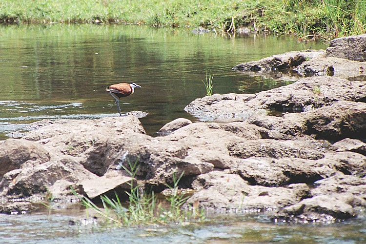 岩の上にいたのは、チドリの仲間のアフリカレンカク。