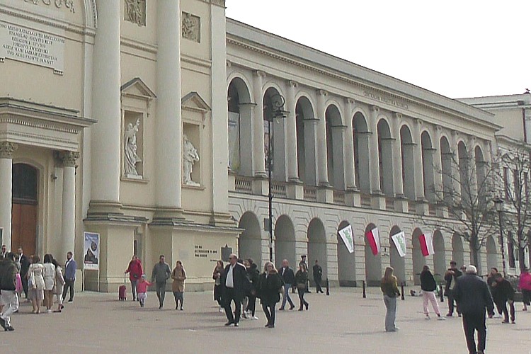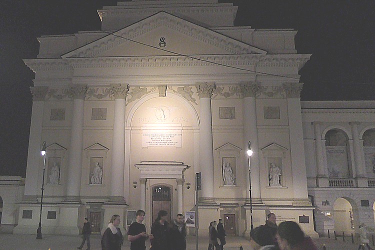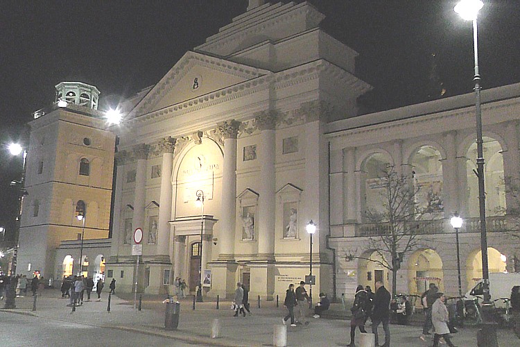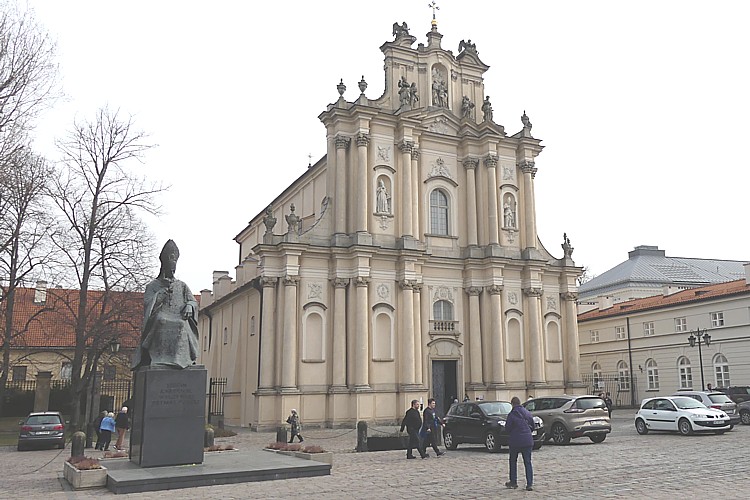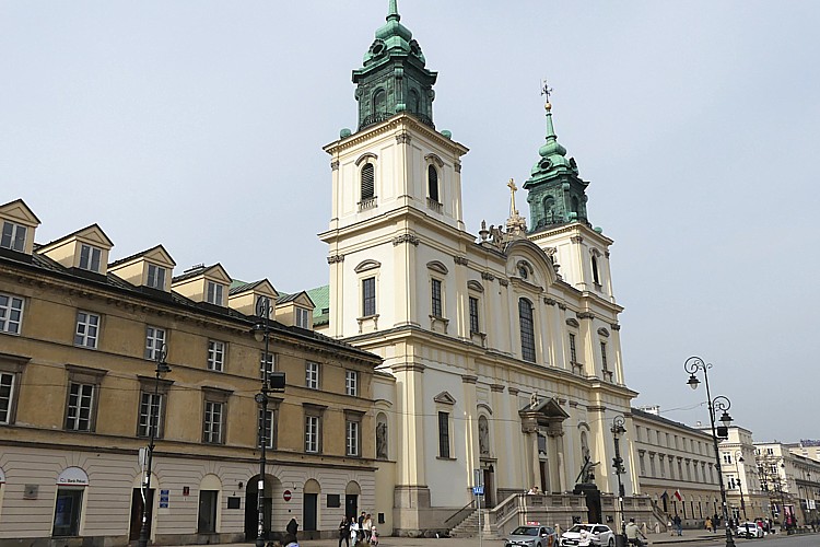 スタシツ宮殿前広場から直ぐ北に建つ教会、聖十字架大聖堂。 |