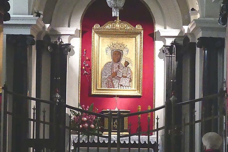 祭壇に飾られている黒い聖母画。 |