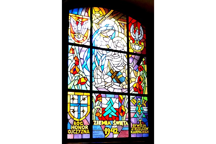 このステンドグラスの下に、1942カルパチア狙撃師団とある。