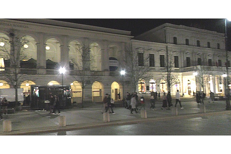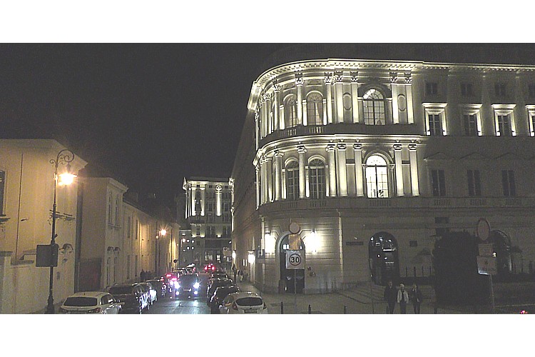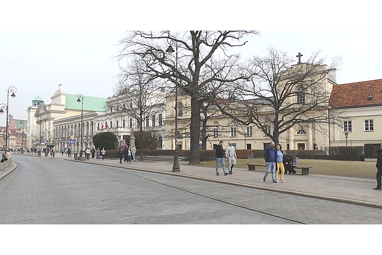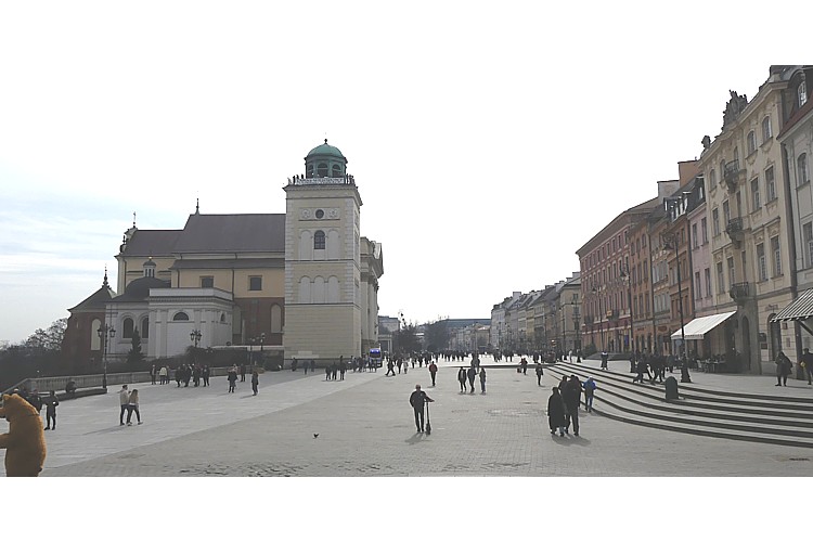広場から北の、旧王宮前広場に至る通りから、振り返って南のスタシツ宮殿の風景。