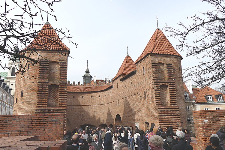お堀に架かる橋の上からのバルバカンの風景。