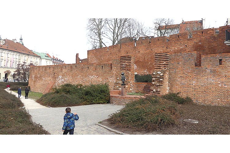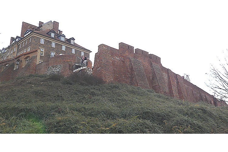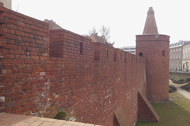 旧市街広場北西角から、ノボミエイスカ通りを北に進むと、ワルシャワ城壁に出る。 |