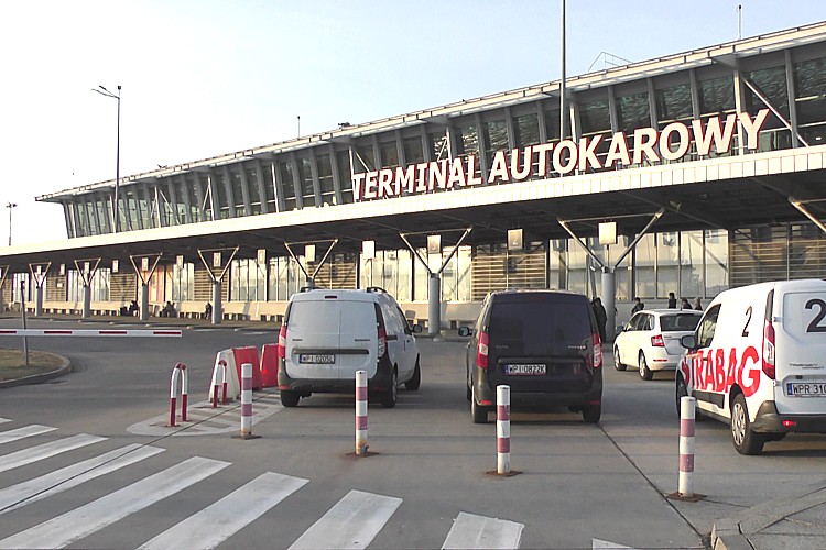ワルシャワ空港ターミナルビルの、バスターミナルの風景。