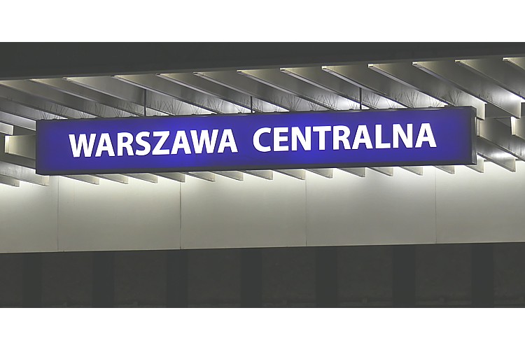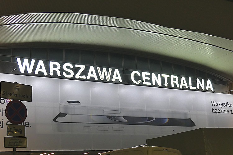 ワルシャワ中央駅の駅名標。 |