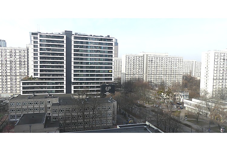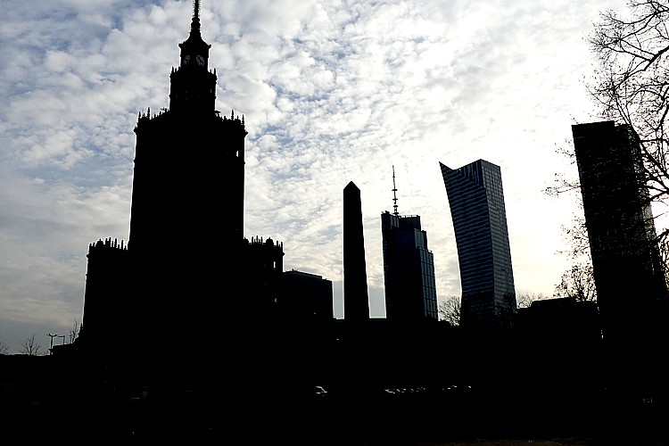 ホテルの部屋からの、ビルが建ち並ぶワルシャワ市内の風景。 |