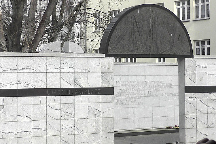 ここはワルシャワ・ゲットーを解体し、ユダヤ人達をトレブリンカ強制絶滅収容所へ移送する為の、鉄道駅の跡地。