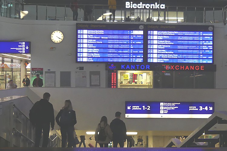 ワルシャワ中央駅の駅舎は商業施設になっていて、プラットホームなどは地下に置かれている地下駅。 |