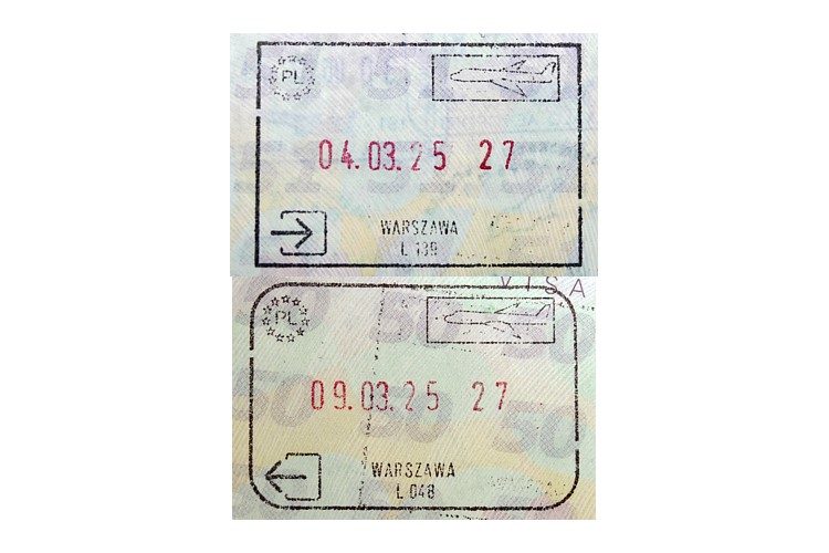 ポーランドの入出国スタンプ。 |