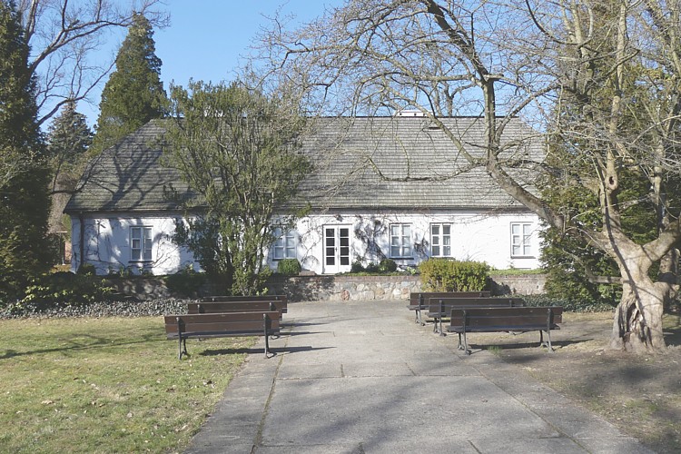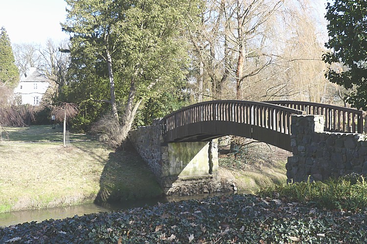 ウトラタ川に架かる橋と生家の建物。 |
