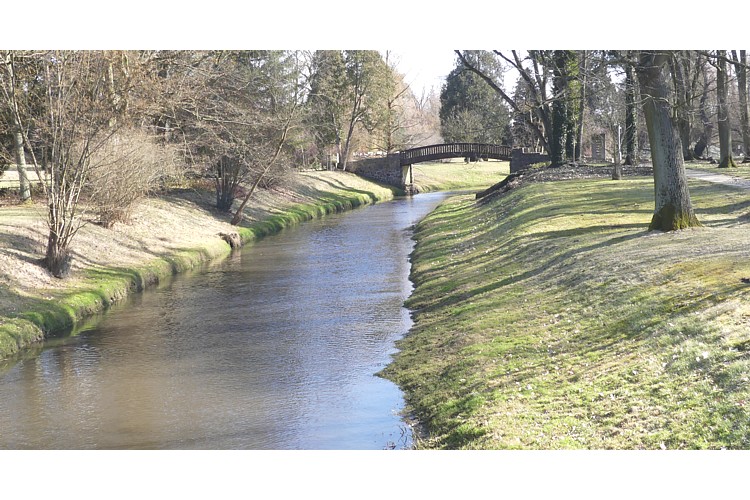 ウトラタ川に架かる木の橋。 |