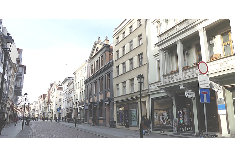 シェロカ通りを西へ、トルン旧市庁舎広場へと向かう。 |