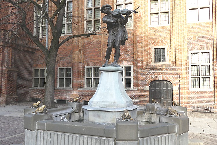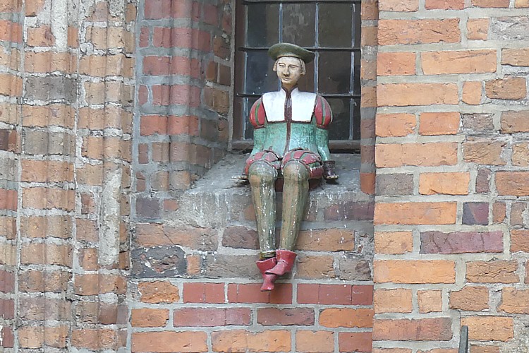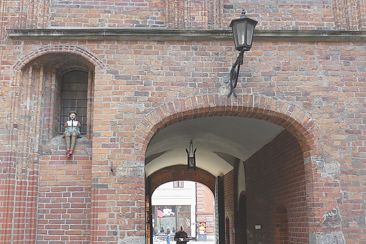 南門アーチの横の窓枠に座っていたのは、焼き物でできた、コペルニクスの少年像。 |