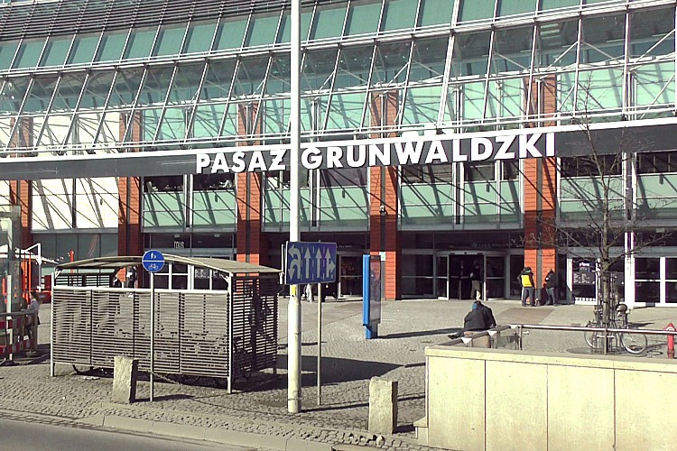 この建物は立体駐車場や複合映画館を備えた、巨大ショッピングモールのパサージュ・グルンワルツキ。 |