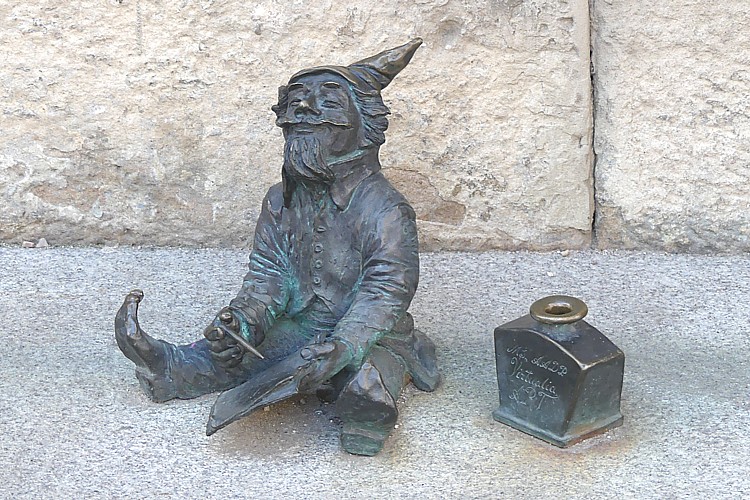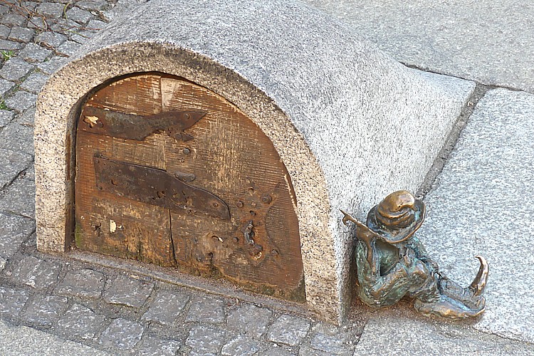 ヴロツワフの旧市街に設置されている小さな像、ヴロツワフの小人。 |