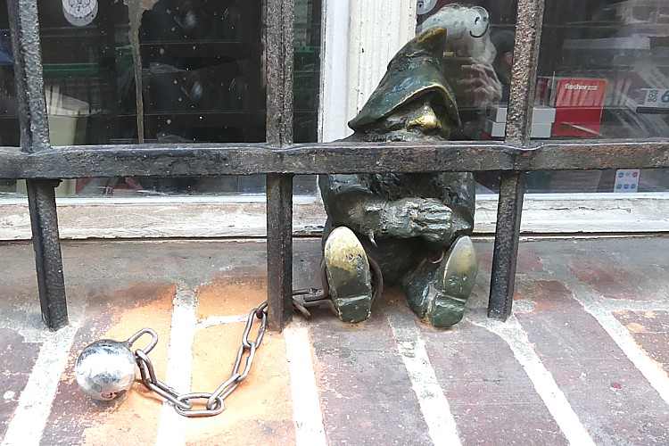 中世の監獄の近くの、ヴロツワフの小人。