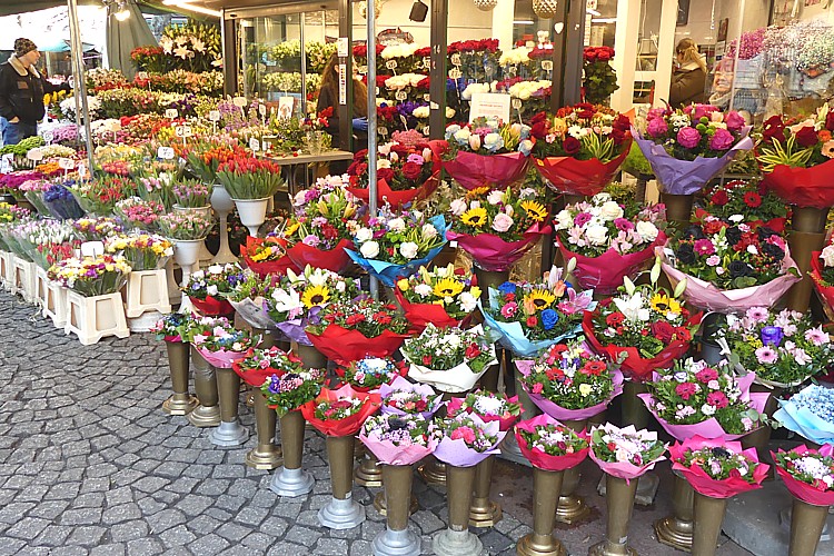 塩市場だったソルニ広場は、現在は花市場となっており、沢山のお店が美しい切り花を売っていた。