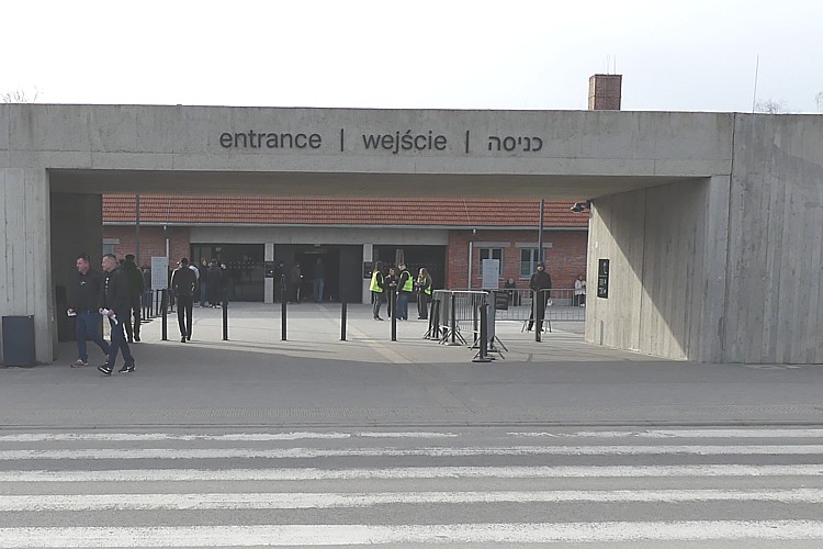 モダンな創りの、アウシュビッツ強制収容所の入り口ゲート。 |