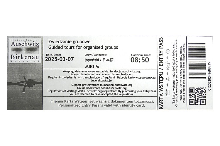 アウシュビッツ強制収容所の入場チケット。 |