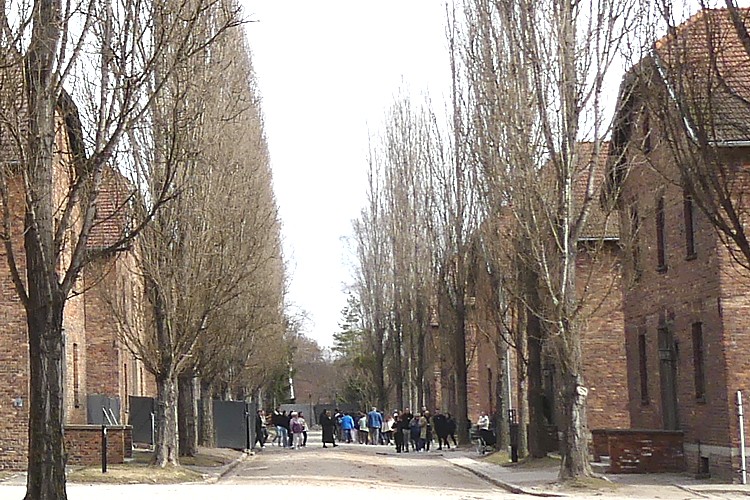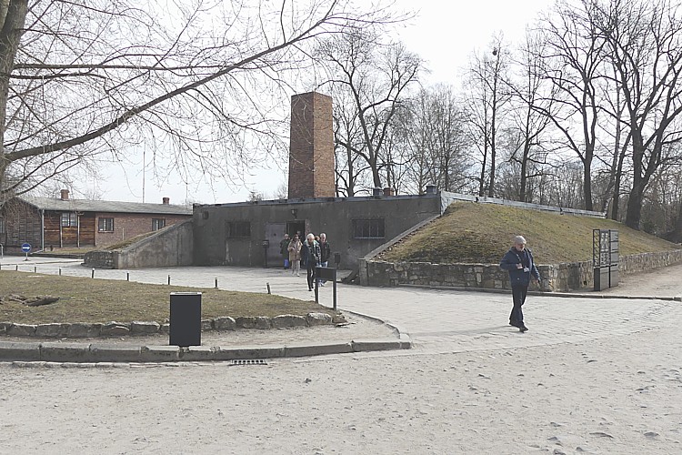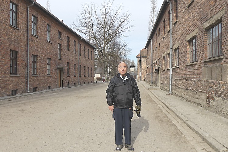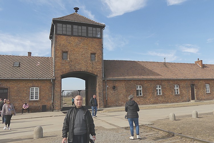 アウシュビッツ強制収容所にて、筆者近影。 |