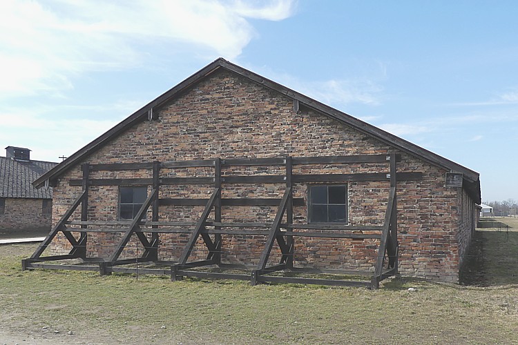 ビルケナウでは大戦末期に多くの建物は破壊され、残っていない。これは非人道的行為を隠すため、と言われている。 |