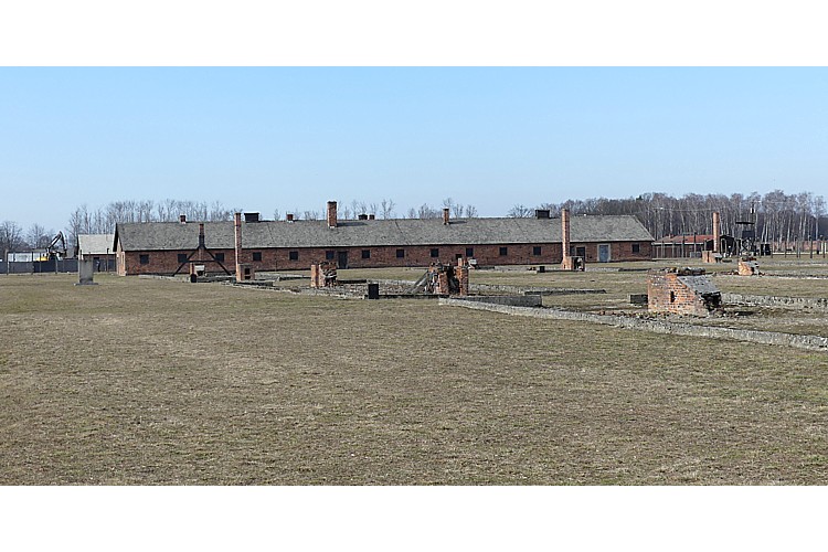 広大な面積のビルケナウ強制収容所、最大で9万人収容された。 |