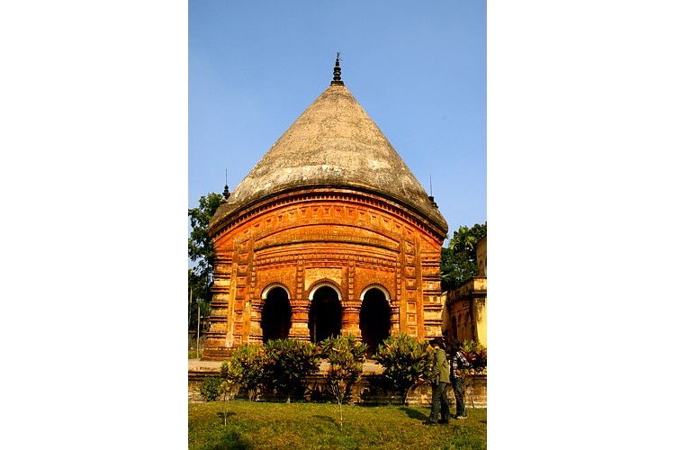 丸みを持つ3つの屋根、ベンガル風の曲面屋根が独特。