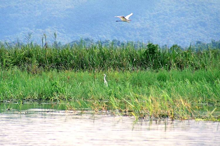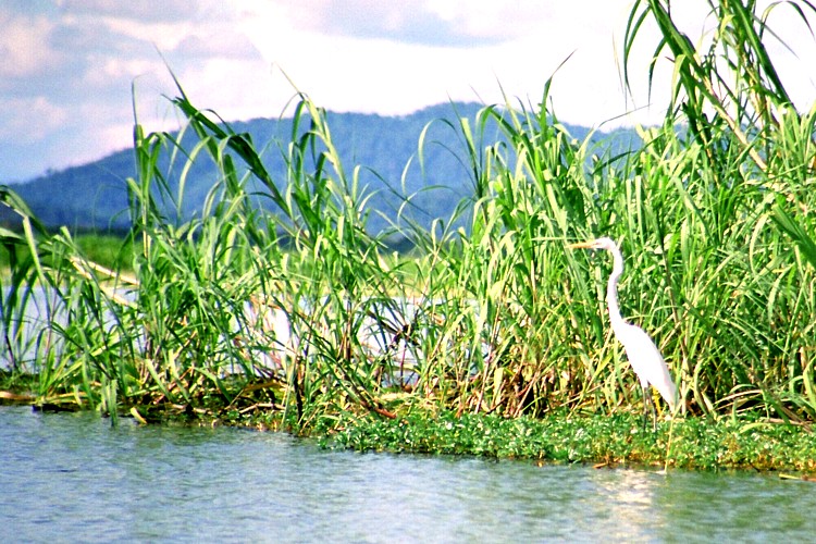 セピック河の所々に、湿地に生えるアシなどが生い茂った湿原がある。 |